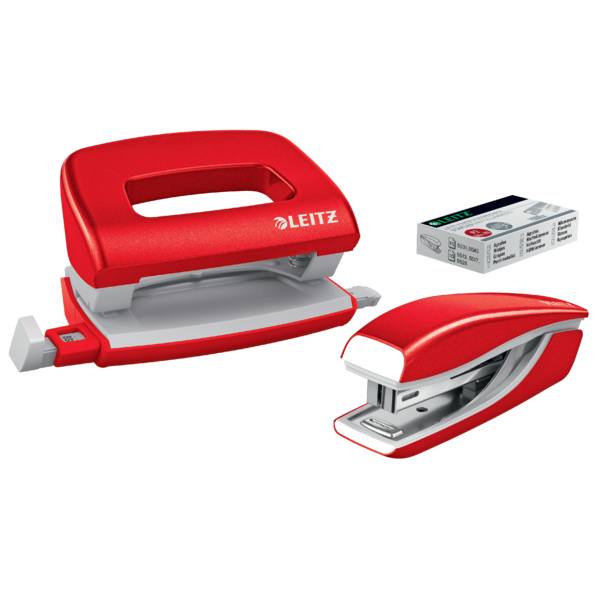Zestaw zszywacz i dziurkacz metalowy mini Leitz NeXXt WOW, czerwony