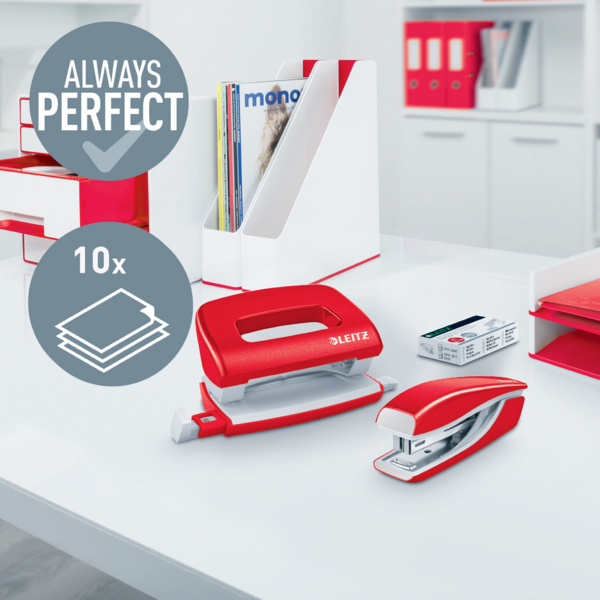 Zestaw zszywacz i dziurkacz metalowy mini Leitz NeXXt WOW, czerwony, do 10 kartek