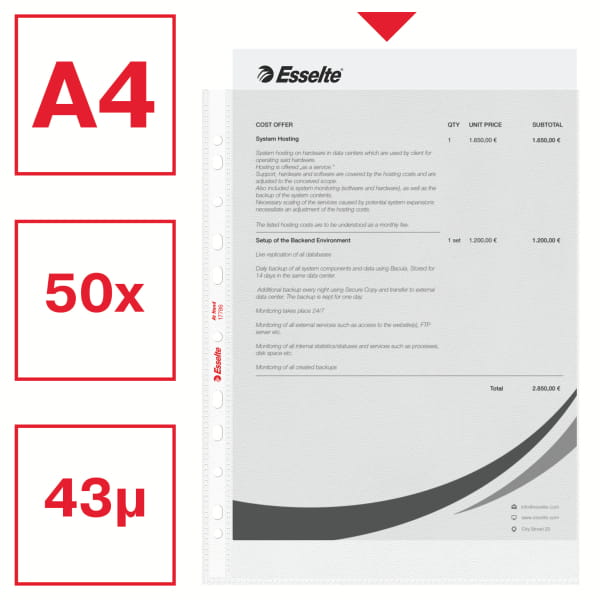 Koszulki groszkowe Esselte, A-4, 43µm, 50 sztuk, w dyspenserze
