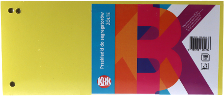 Przekładki kartonowe KBK, żółte 1/3 A-4, 100 przekładek