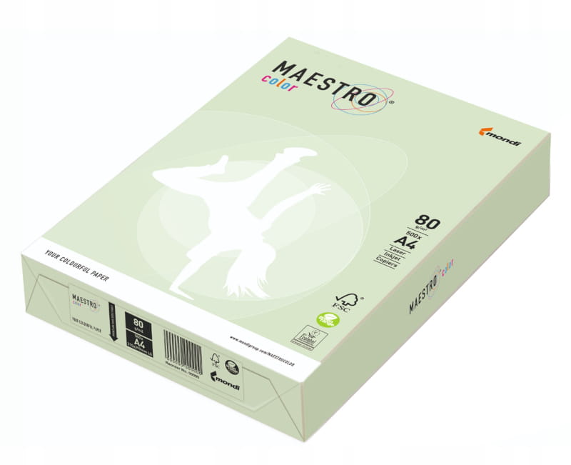 Papier kolorowy Maestro Color A-4 80g/m², 500 arkuszy, pastel jasny zielony (GN27A)