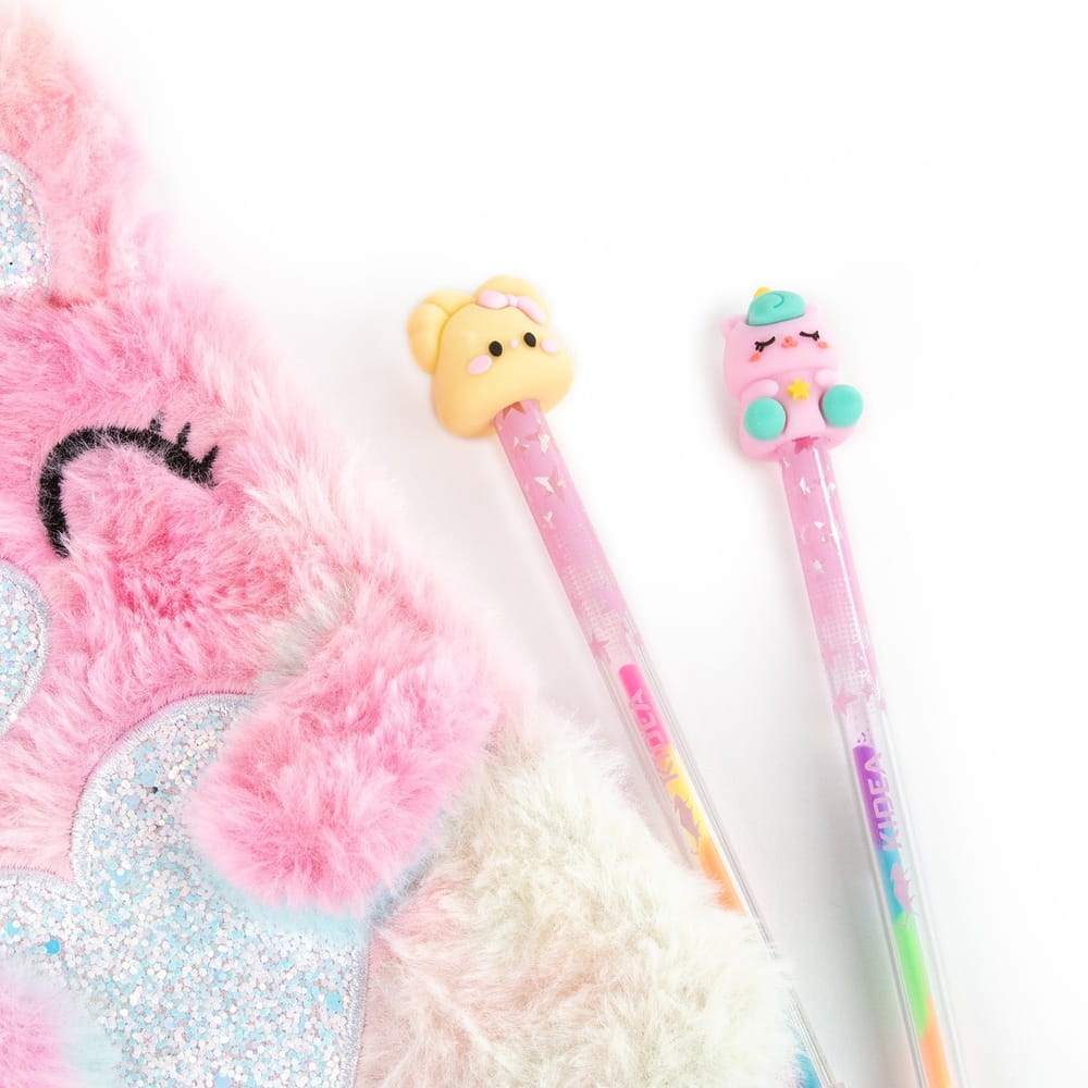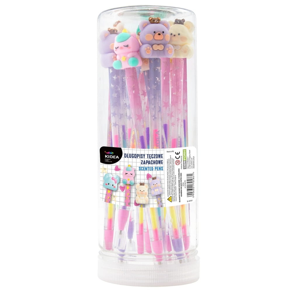 Długopis tęczowy zapachowy z figurką Kidea to idealne połączenie radości pisania i bajkowego designu! Każdy długopis ma wielokolorowy, tęczowy korpus, który pięknie mieni się w świetle i przyciąga wzrok.