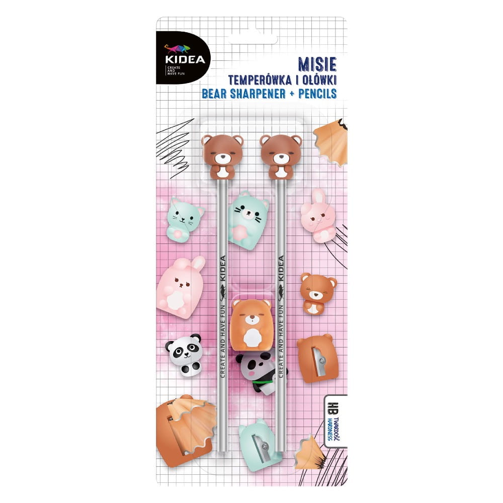 Kidea Misie – temperówka z ołówkami 3 elementy | Zestaw szkolny dla dzieci