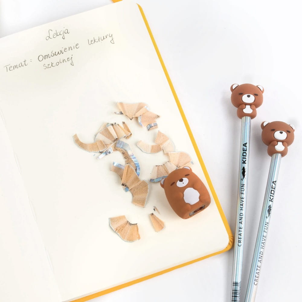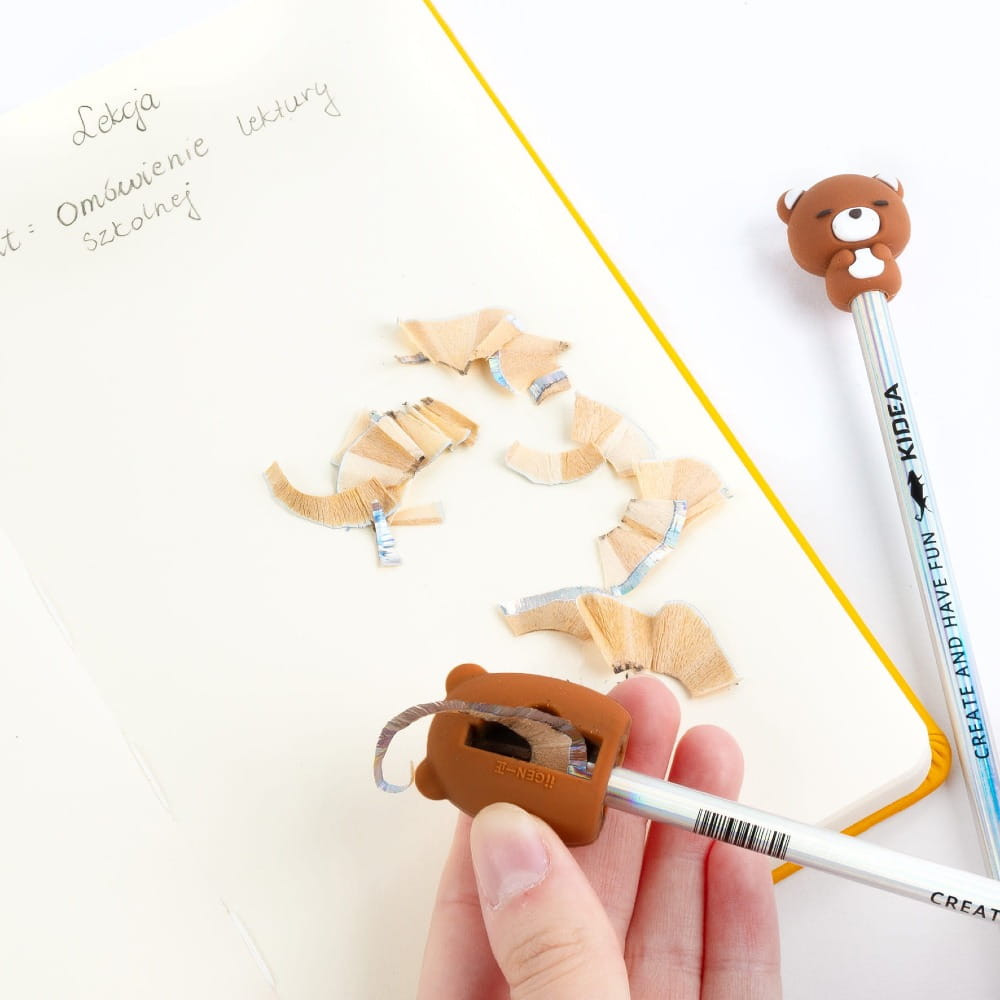 - Temperówka w kształcie misia – funkcjonalna i dekoracyjna, sprawia, że nauka staje się zabawą.