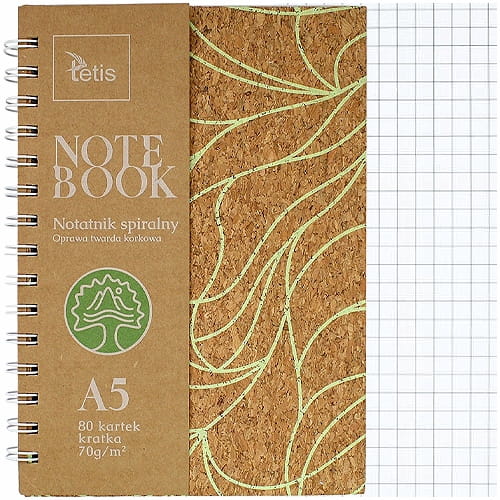 Kołonotatnik Tetis A-5 80 kartek, oprawa korkowa, kratka