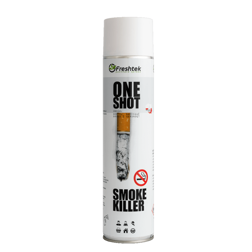 Freshtek ONE SHOT to idealne rozwiązanie do biur, hoteli, samochodów, sal konferencyjnych i wszędzie tam, gdzie chcesz szybko pozbyć się nieprzyjemnego zapachu dymu. Profesjonalna jakość i wyjątkowa skuteczność w jednym.