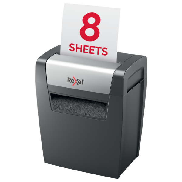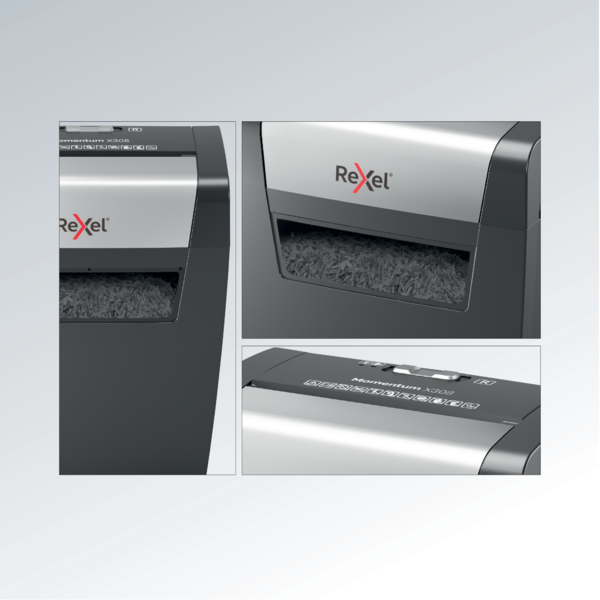 Posiada moc, aby niszczyć więcej! Niszczarka Rexel Momentum X308 niszczy do 8 kartek jednocześnie i może pracować nieprzerwanie przez 3 minuty - idealnie nadaje się do użytku domowego. Tnie na konfetti 5 x 42 mm, gwarantując tym bezpieczeństwo na poziomie P3. Posiada 15-litrowy pojemnik na ścinki, który mieści do 100 kartek A4.