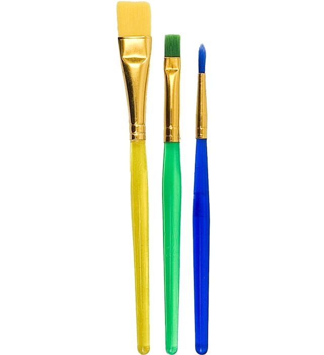 - Zestaw 3 sztuk – dwa pędzle płaskie i jeden okrągły,