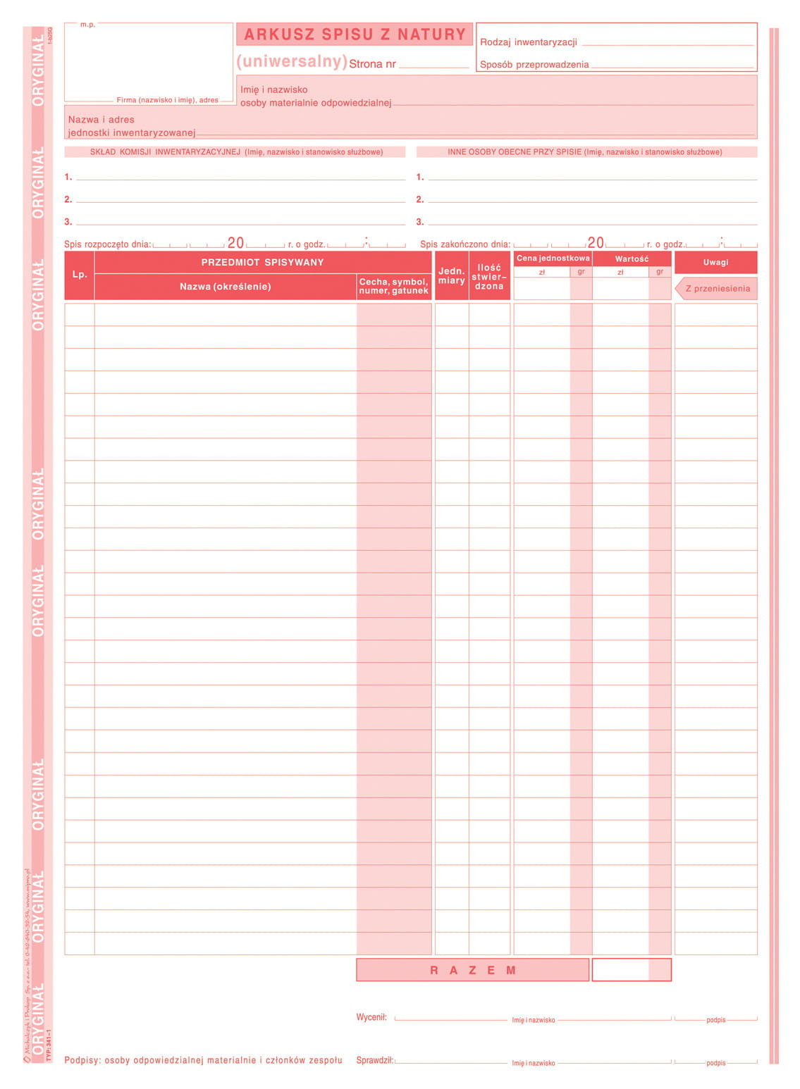 - Druk: jednostronny (oryginał + kopia)