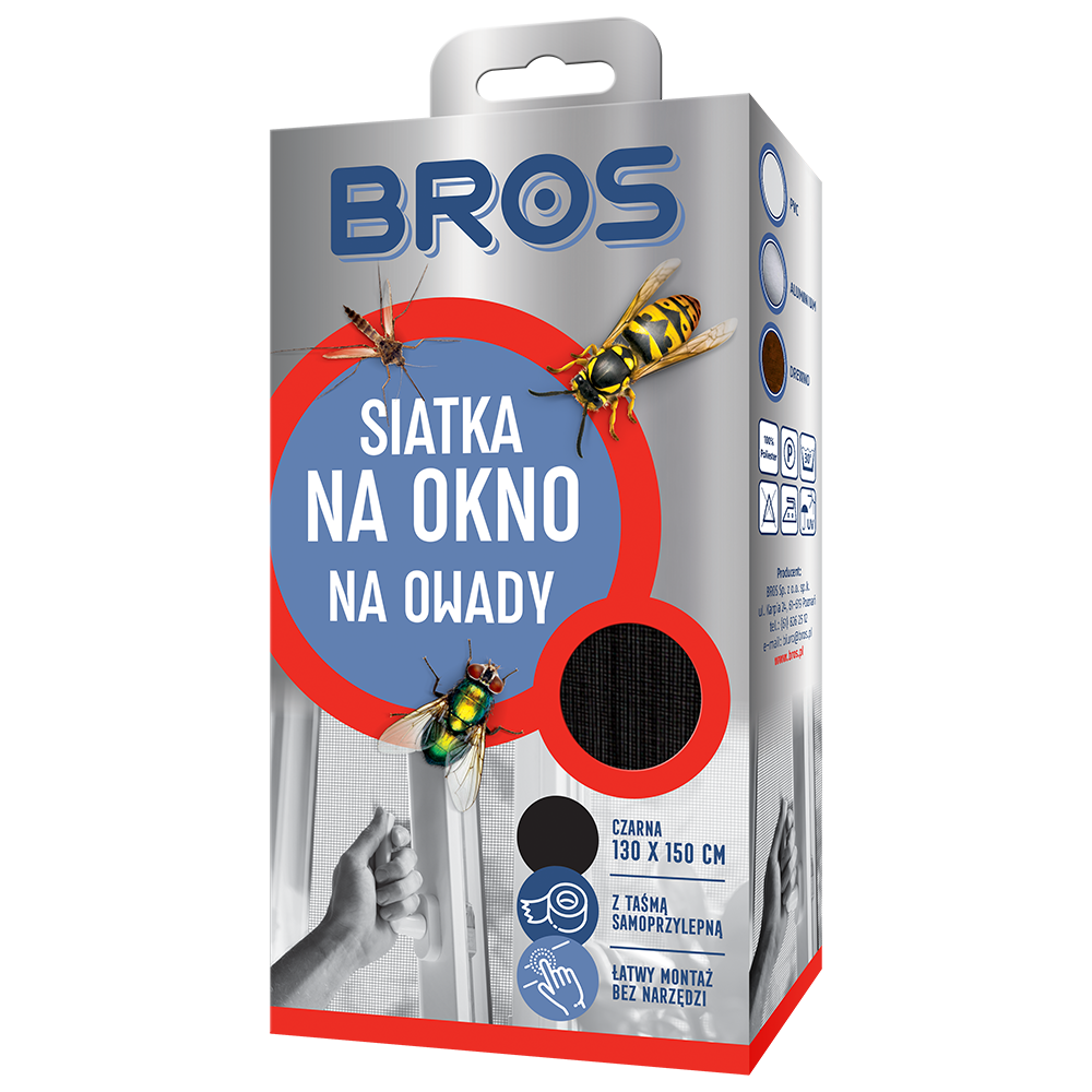 Siatka zabezpieczająca przed owadami (muchami, komarami, ćmami oraz owadami biegającymi). Mocowanie siatki na rzep zapewnia łatwy montaż i demontaż. Może być stosowana na wszystkie rodzaje okien. Do wielokrotnego użycia – zabrudzoną siatkę można wyprać.
