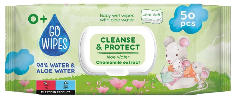 Chusteczki nawilżane dla dzieci z aloesem i rumiankiem GoWipes, 50 sztuk