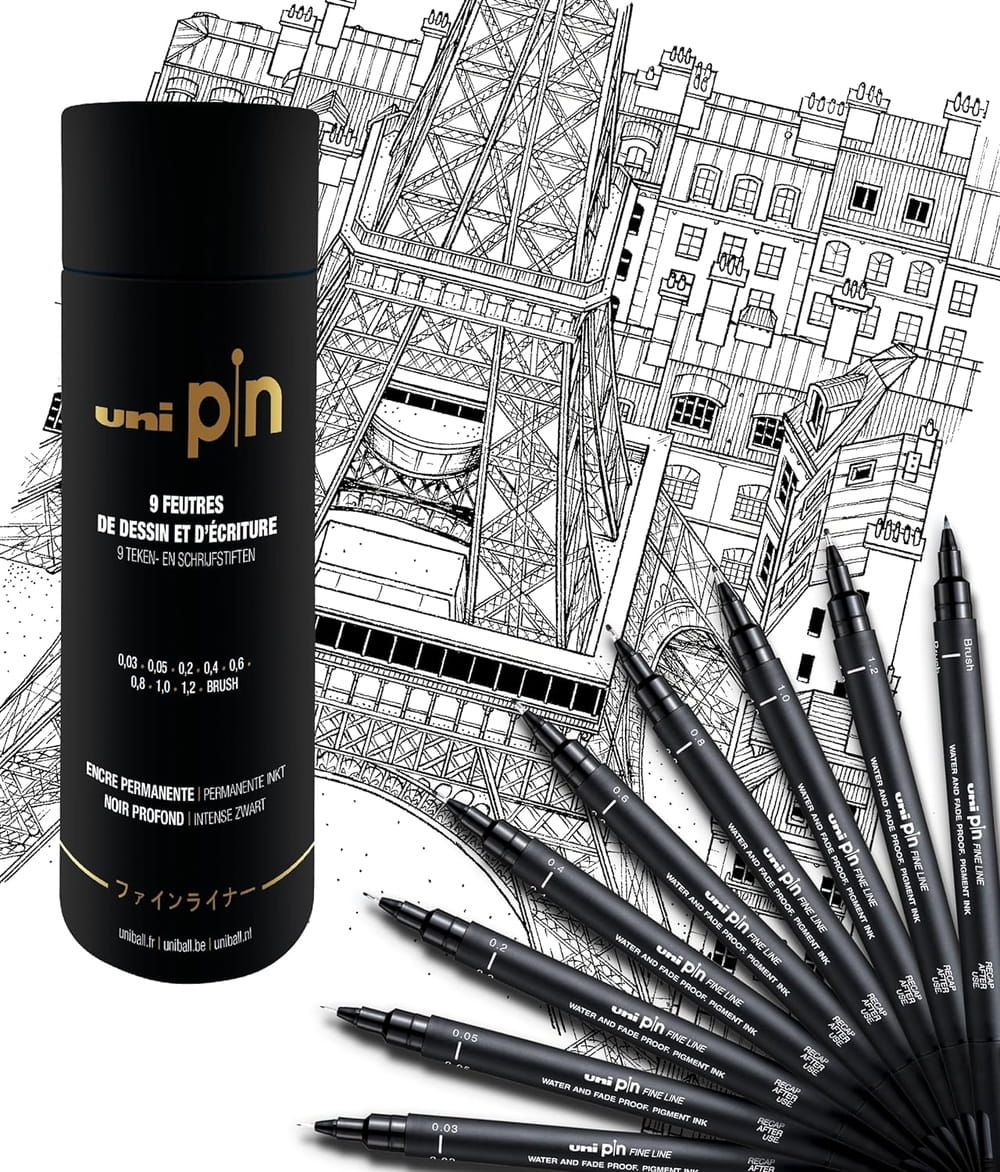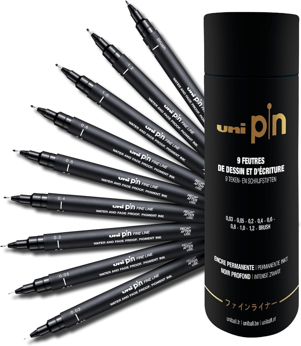 Zestaw profesjonalnych cienkopisów kreślarskich UNI PIN doskonały dla projektantów, grafików i artystów. Idealny do szkicowania i rysunku technicznego. Pisaki Uni Pin są wodoodporne, schną bardzo szybko i nie rozmazują się. Trwała i twarda końcówka fibrowa nie ulega rozwarstwieniu w miarę użytkowania.