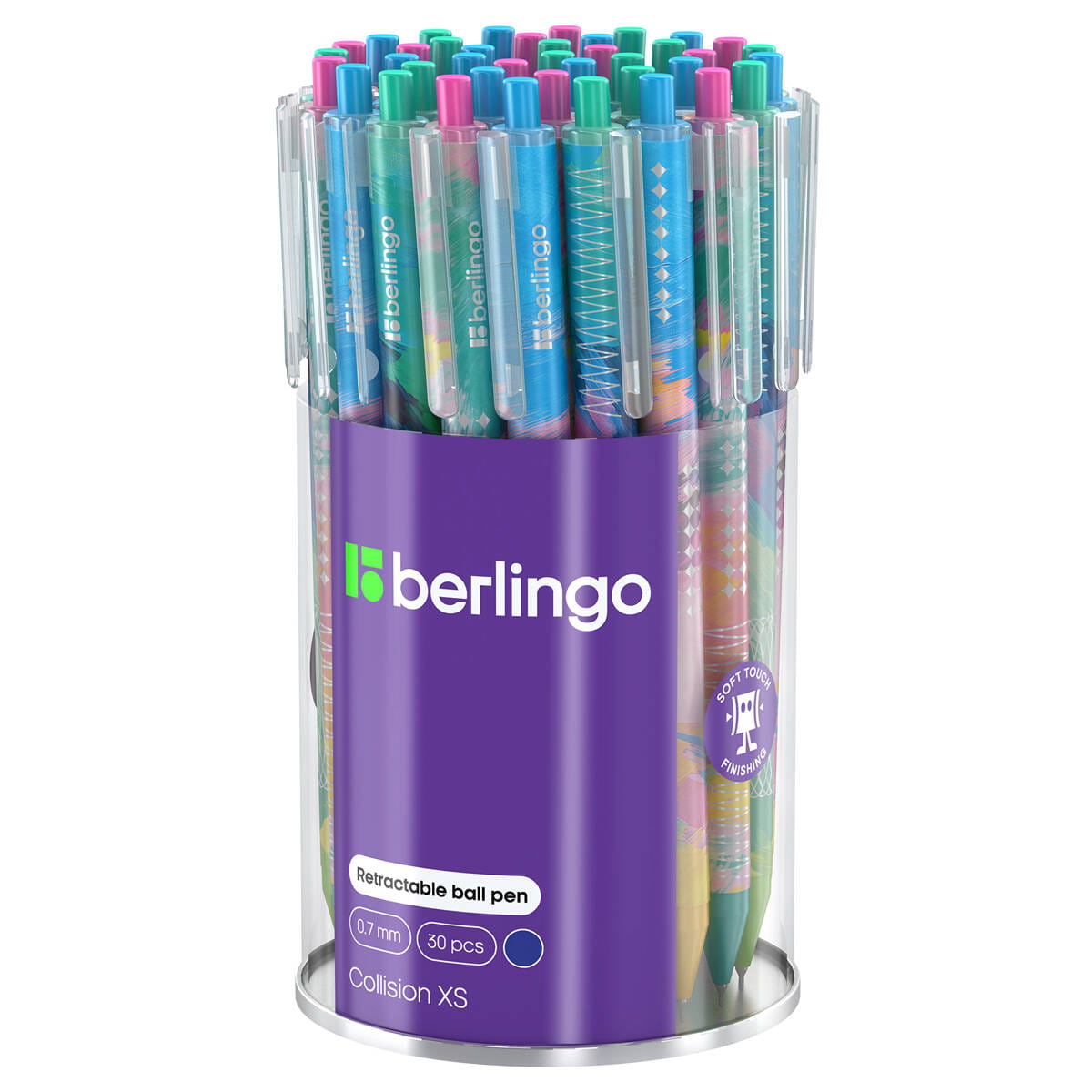 Długopis automatyczny Berlingo "Collision XS" to połączenie wyrazistego designu i nowoczesnej technologii. Nowa, kolorowa kolekcja przyciąga wzrok harmonijną mieszanką barw i dynamicznych wzorów, wnosząc świeżość i styl do codziennej pracy biurowej oraz szkolnej.