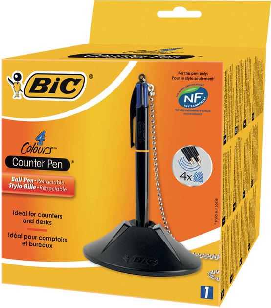 Długopis BIC 4 Colours Desk Pen – idealne rozwiązanie dla miejsc publicznych, takich jak recepcje, banki czy urzędy, gdzie niezawodność i funkcjonalność są kluczowe.