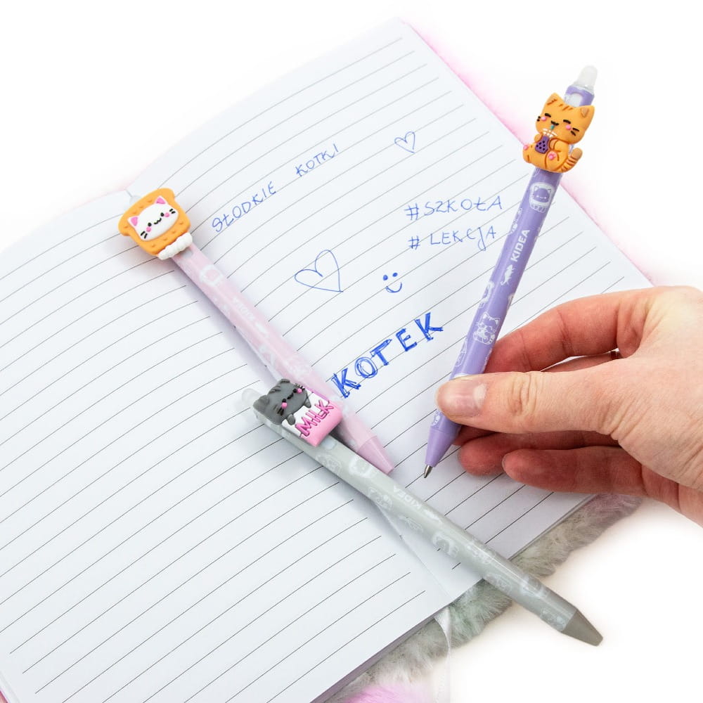 Automatyczny długopis wymazywalny z uroczą figurką Kotka to idealny gadżet dla wielbicieli tych słodkich zwierzątek. Do wyboru 3 warianty kolorystyczne, dzięki czemu każdy znajdzie swój ulubiony.