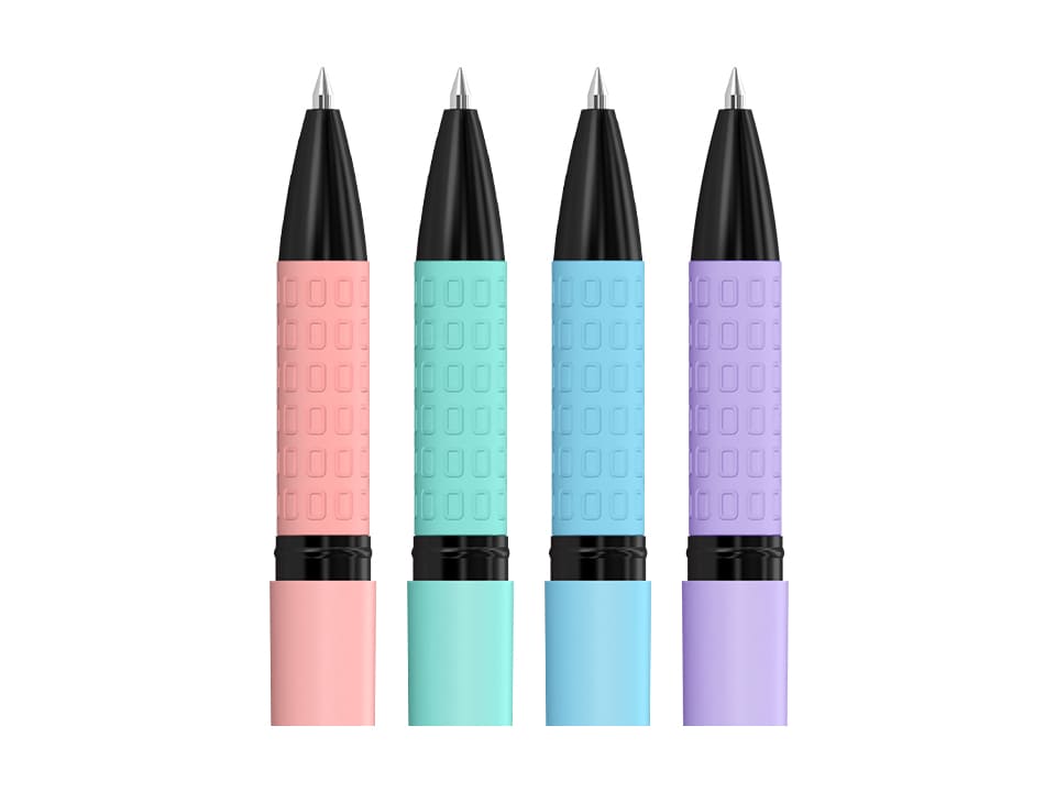 Przyjemna w dotyku, aksamitna obudowa z powłoką soft-touch oraz miękki gumowy uchwyt zapewniają maksymalny komfort pisania. Strzałkowata końcówka pisząca oraz miękkie, żelowe tusze na bazie wody gwarantują wyjątkową gładkość i intensywność pisma.