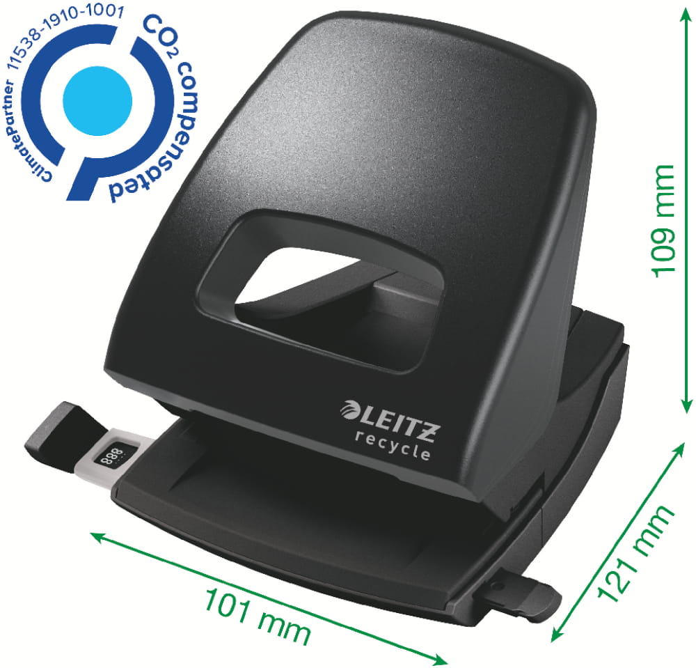 Opatentowana, łatwo poddająca się naciskowi strefa uchwytu i doskonałe ostrza pozwalają zmniejszyć wysiłek podczas dziurkowania. Ten solidny i niezawodny dziurkacz zapewnia użytkowanie przez długie lata i doskonale pasuje do innych produktów z kolekcji Leitz Recycle. Kolekcja nowoczesnych, przyjaznych dla środowiska artykułów biurowych świetnie zaprezentuje się w domu i w biurze.