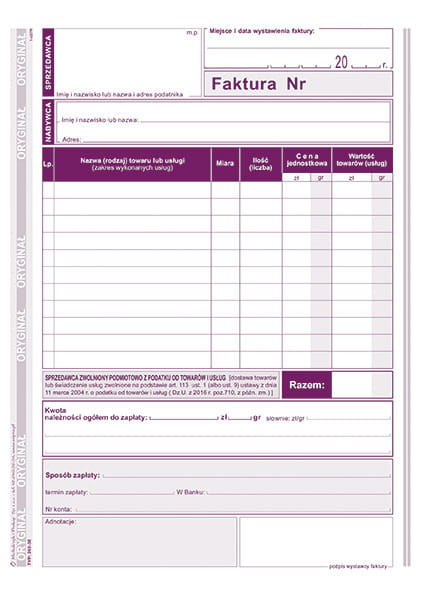 Faktura dla podatników zwolnionych podmiotowo z podatku od towarów i usług /202-3