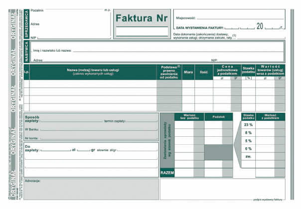 - Typ papieru: samokopiujący oryginał+kopia