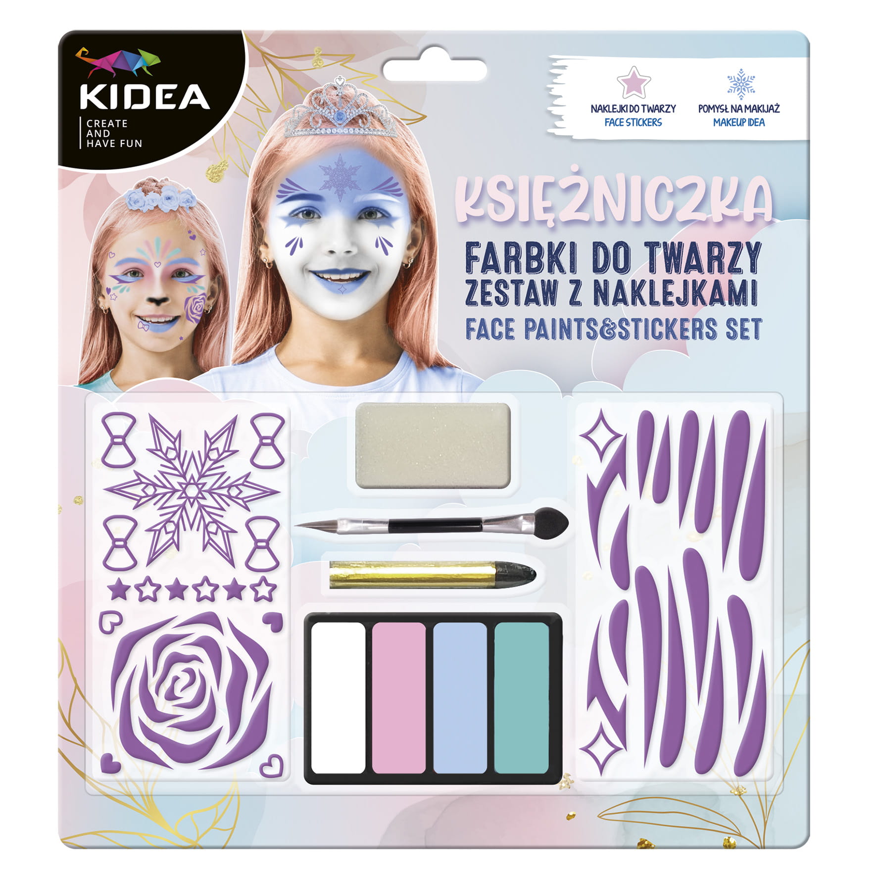 - Stwórz makijaż godny prawdziwej księżniczki z farbkami i naklejkami do twarzy KIDEA!