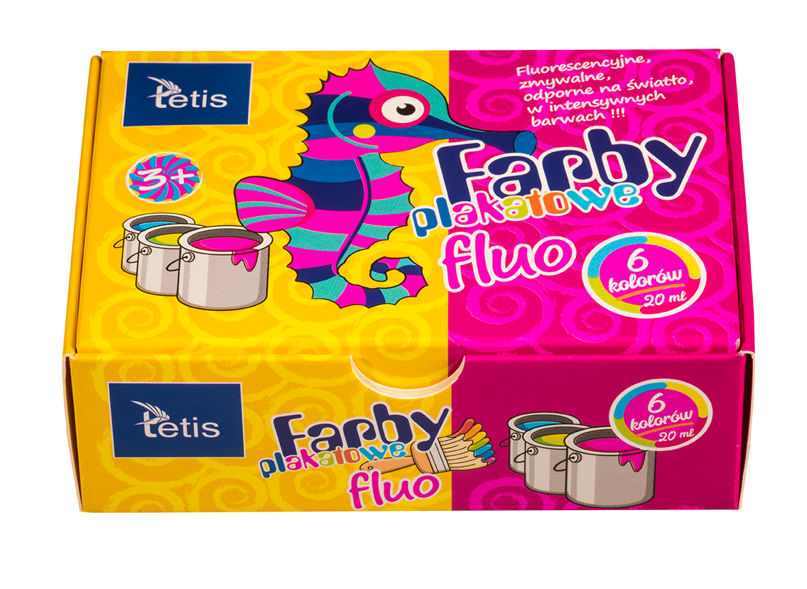 Farby plakatowe Tetis 6 kolorów fluo, 20ml