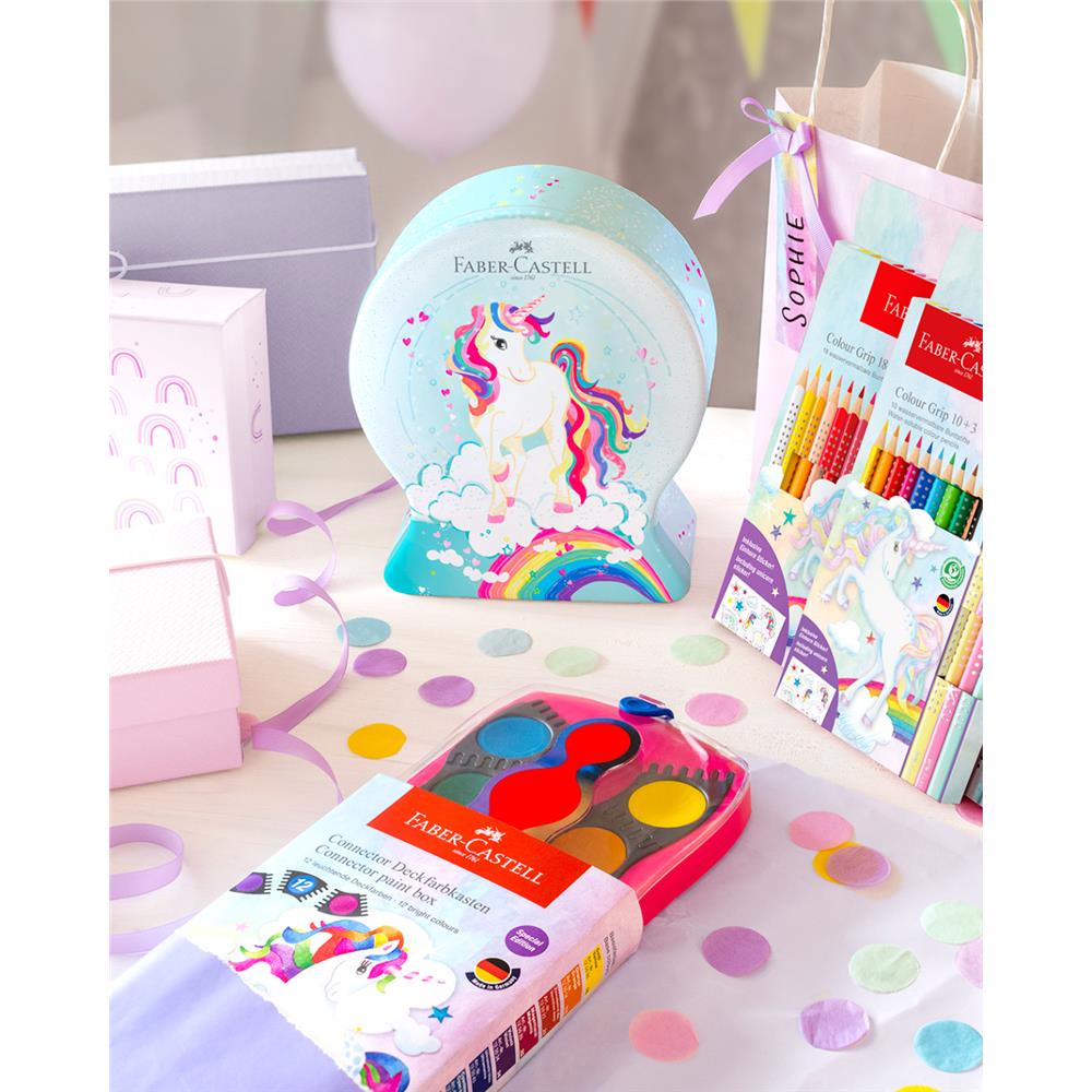 Flamastry Faber-Castell Connector 33 sztuk w atrakcyjnym metalowym opakowaniu z motywem jednorożca.