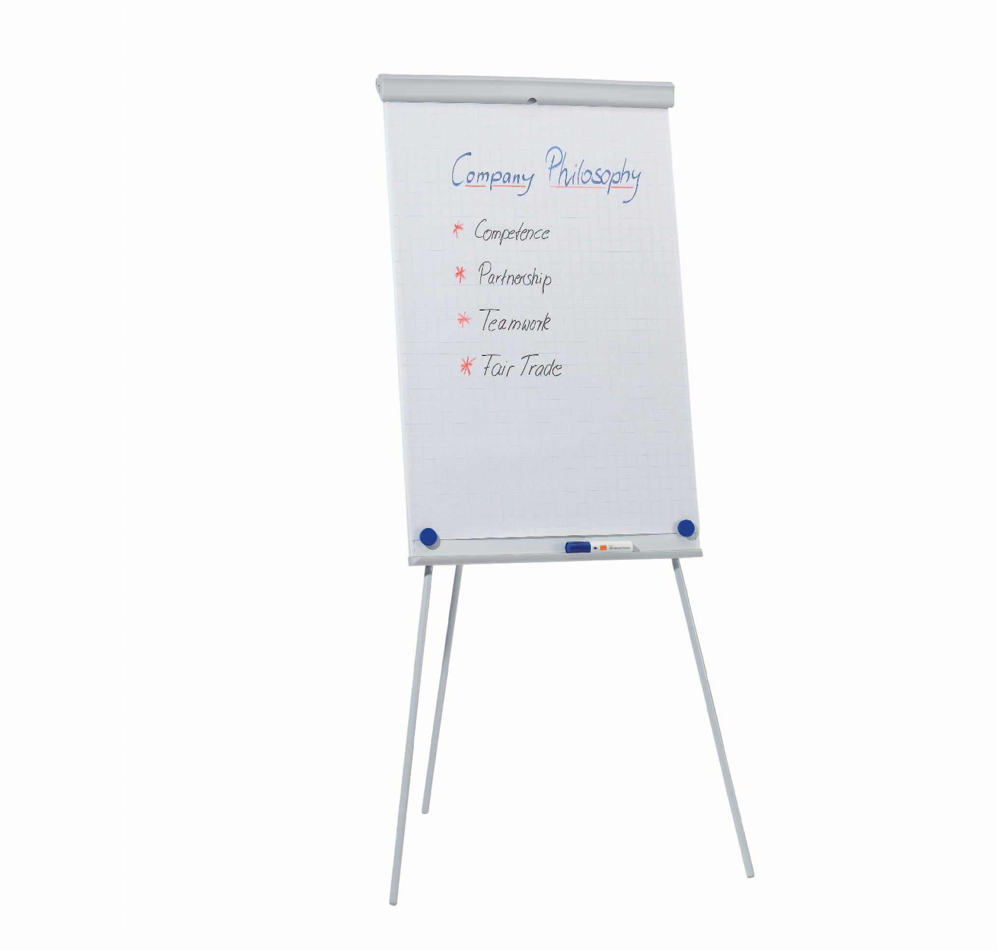 - Flipchart posiada zintegrowaną półkę na markery.