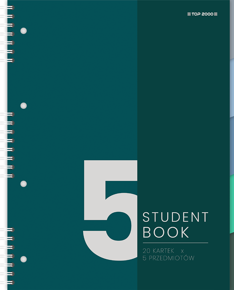 Kołonotatnik TOP-2000 Student Book, B-5, 100 kartek, kratka, kolorowe registry
