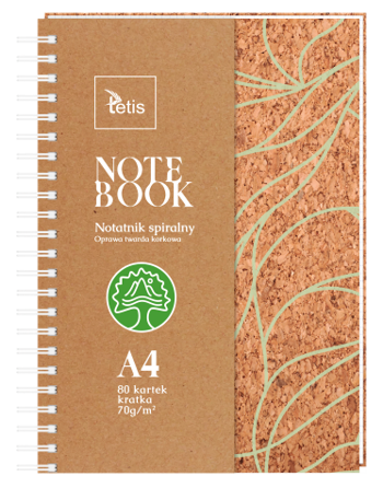 Kołonotatnik Tetis, A-4 80 kartek, oprawa korkowa, kratka
