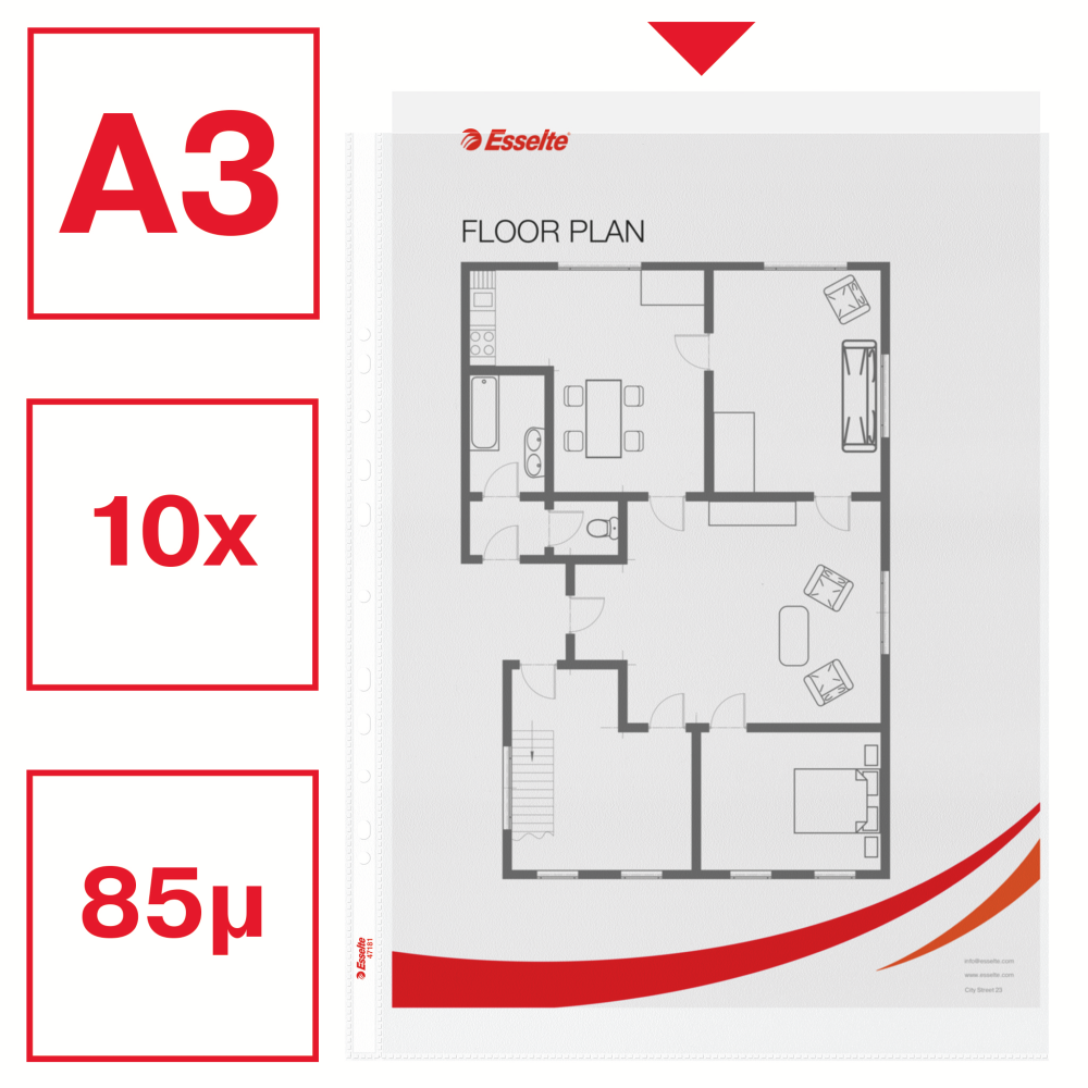 Koszulki groszkowe Esselte 30% PP z recyklingu A3, 85µm, 10 sztuk