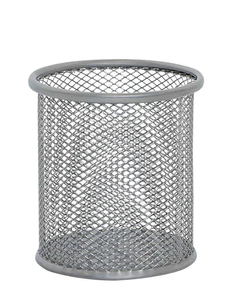 - Pojemnik na długopisy, wyprodukowany z metalowej siateczki powlekanej lakierem