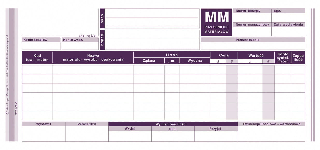 MM przesunięcie międzymagazynowe materiałów /355-8