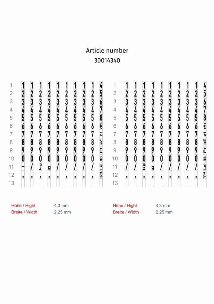 - Dwurzędowa metkownica cenowa z 10 znakami alfanumerycznymi zadruku na rząd, o wysokości znaku 4,3 mm