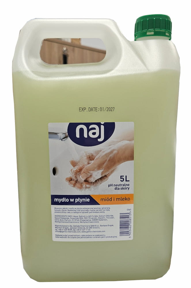 - Mydło w płynie do uzupełniania dozowników o zapachu miodowym.