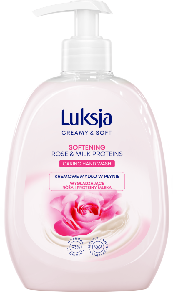- Kremowe mydło w płynie Luksja Róża i Proteiny mleka łagodnie oczyszcza i pielęgnuje dłonie podczas każdego mycia.