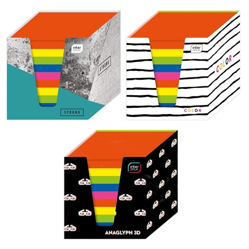 Notes kostka Interdruk, kolorowa 90x90x90mm, w pojemniku kartonowym