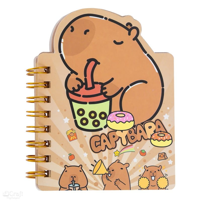Notesik na spiralce z motywem kapibary to wyjątkowe połączenie funkcjonalności i uroczego designu. Kompaktowy format sprawia, że idealnie mieści się w plecaku, torebce lub piórniku.