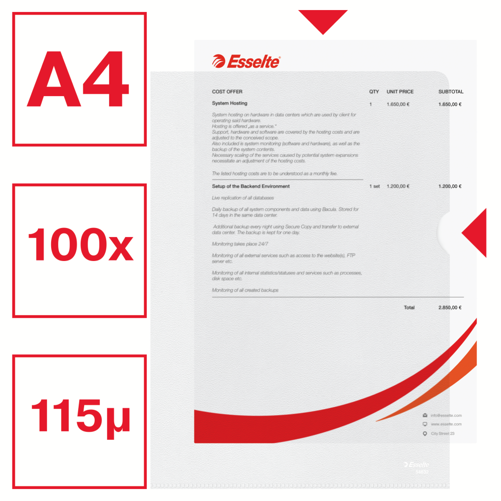 Ofertówka groszkowa Esselte Recycled A-4, 30% PP z recyklingu, 115µm, 100 sztuk