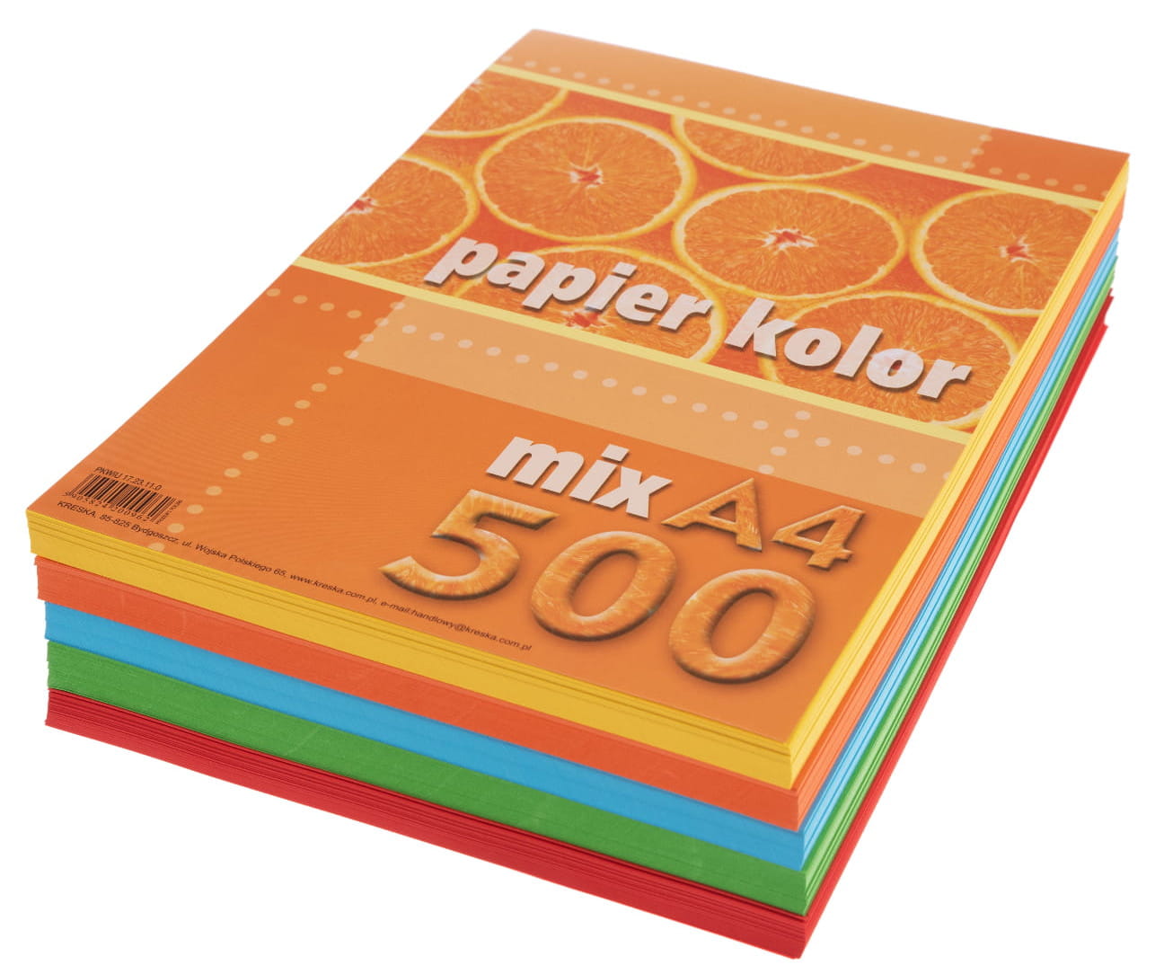 - Opakowanie zawiera 500 arkuszy papieru barwionego w masie o gramaturze 80 g/m2 w 5 najpopularniejszych kolorach: czerwony, niebieski, pomarańczowy/różowy, zielony, żółty.