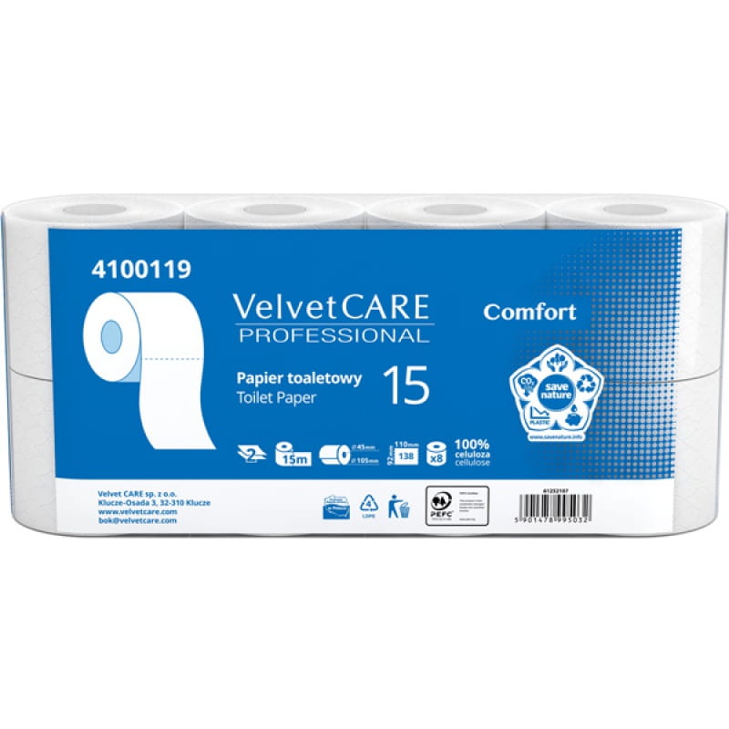 Papier toaletowy celulozowy VELVET Professional, 2-warstwowy, 138 listków, 15m, biały, 8 sztuk