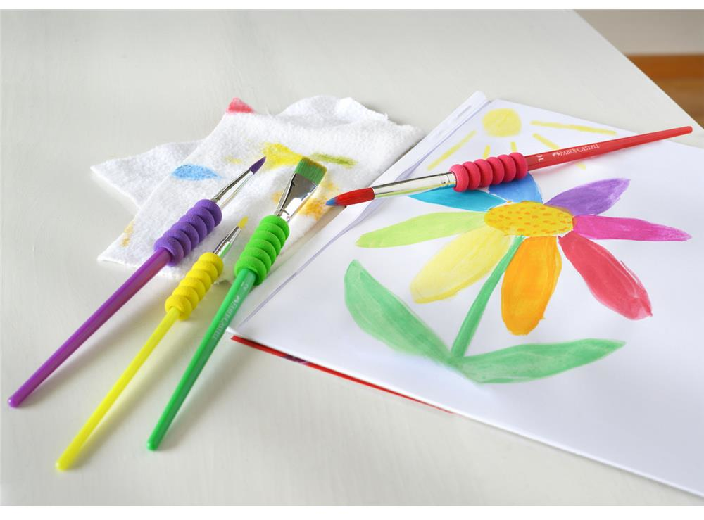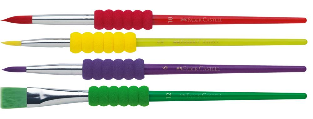 - Zestaw pędzelków dla dzieci Faber-Castell z miękkim uchwytem w 4 rozmiarach.