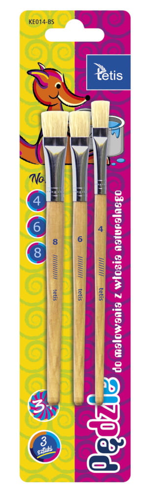 Pędzle szkolne płaskie Tetis 3 rozmiary (4,6,8)