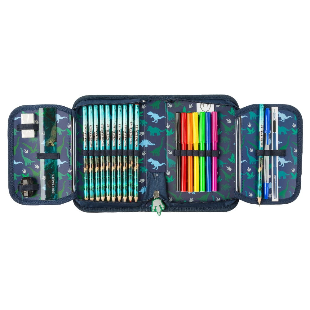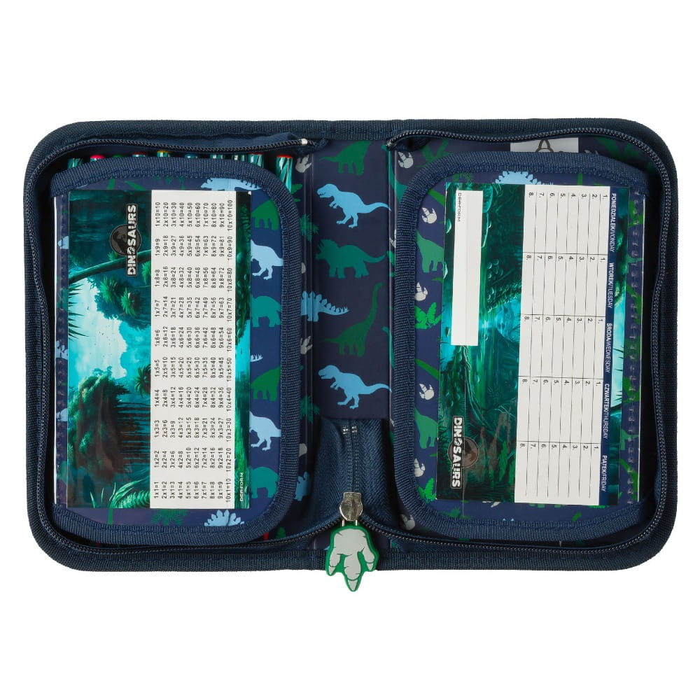 Piórnik szkolny Derform pojedynczy Dinozaur, z wyposażeniem