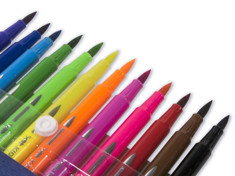 Zestaw zawiera: 12 dwustronnych pisaków pedzelkowych Kidea w różnych kolorach.