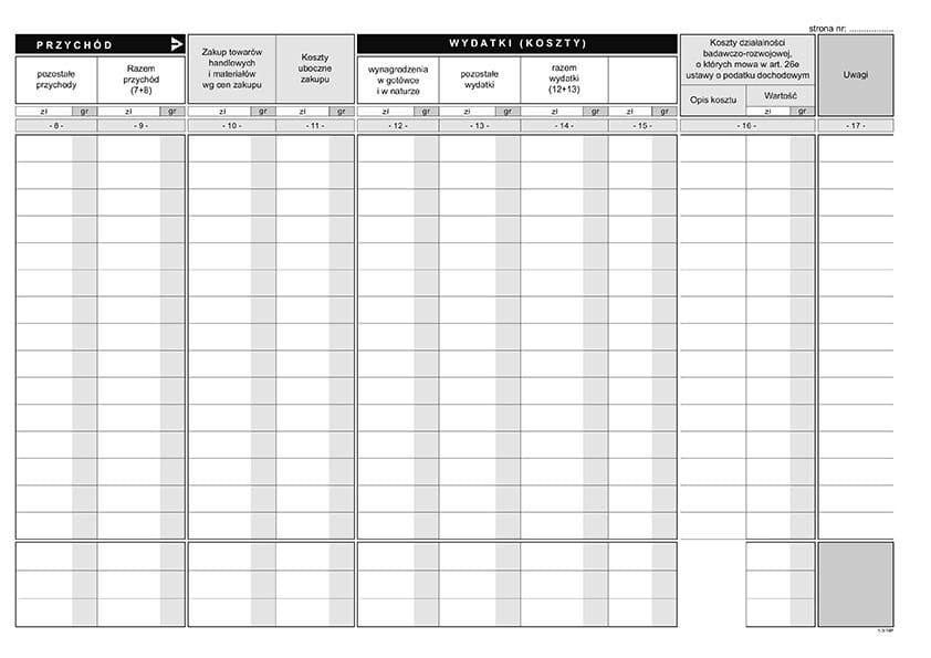- Druk niezbędny podatnikom prowadzącym księgę przychodów i rozchodów