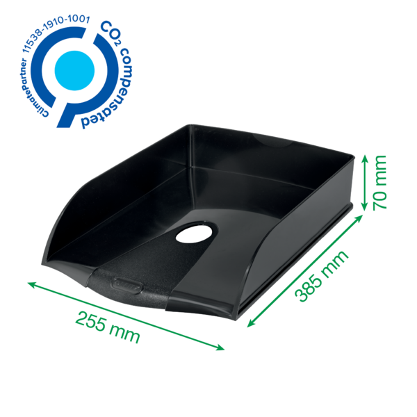 Przyciągająca wzrok, najwyższej jakości półka na dokumenty wykonana w 98% z plastiku pochodzącego z recyklingu pokonsumenckiego, odpowiednia dla dokumentów w formacie A4. Jest neutralna dla klimatu dzięki redukcji emisji i kompensacji CO2, w 100% nadaje się do recyklingu; posiada certyfikat środowiskowy Blue Angel. Ta solidna półka zapewnia użytkowanie przez długie lata i doskonale pasuje do innych produktów z kolekcji Leitz Recycle. Kolekcja nowoczesnych, przyjaznych dla środowiska artykułów biurowych świetnie zaprezentuje się w domu i w biurze.