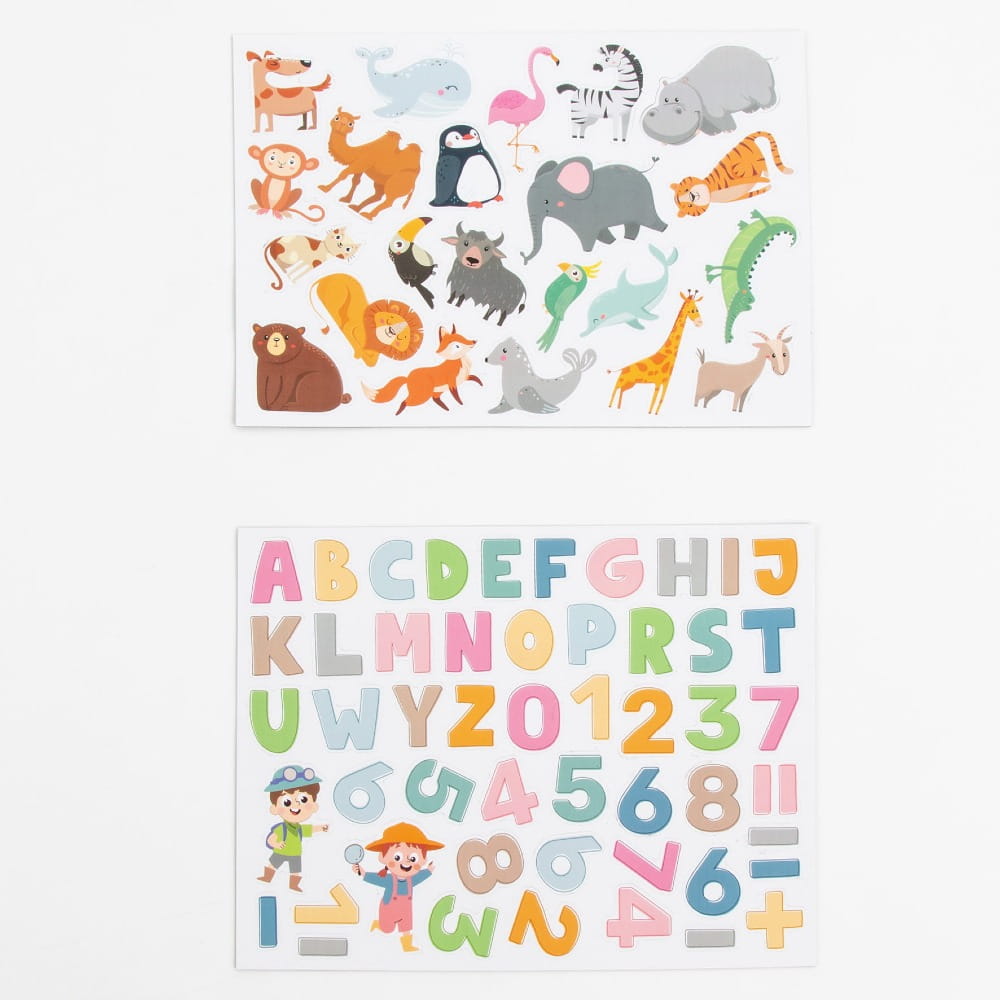 - aż 73 magnesy z motywami zwierząt, liter i cyfr