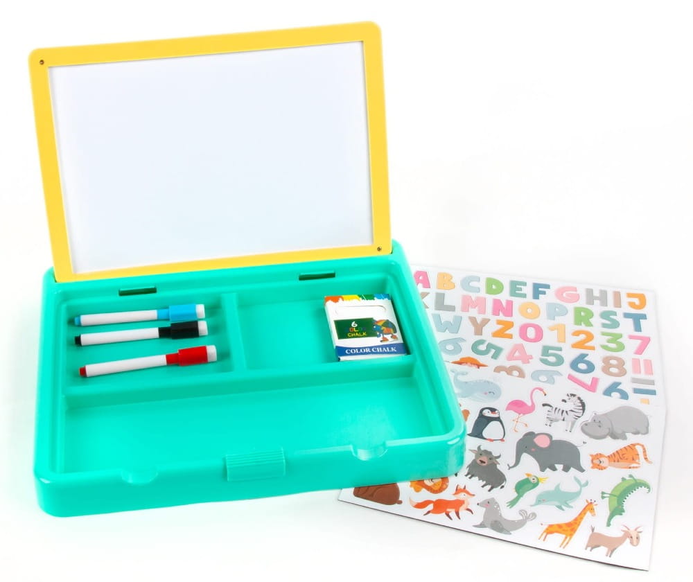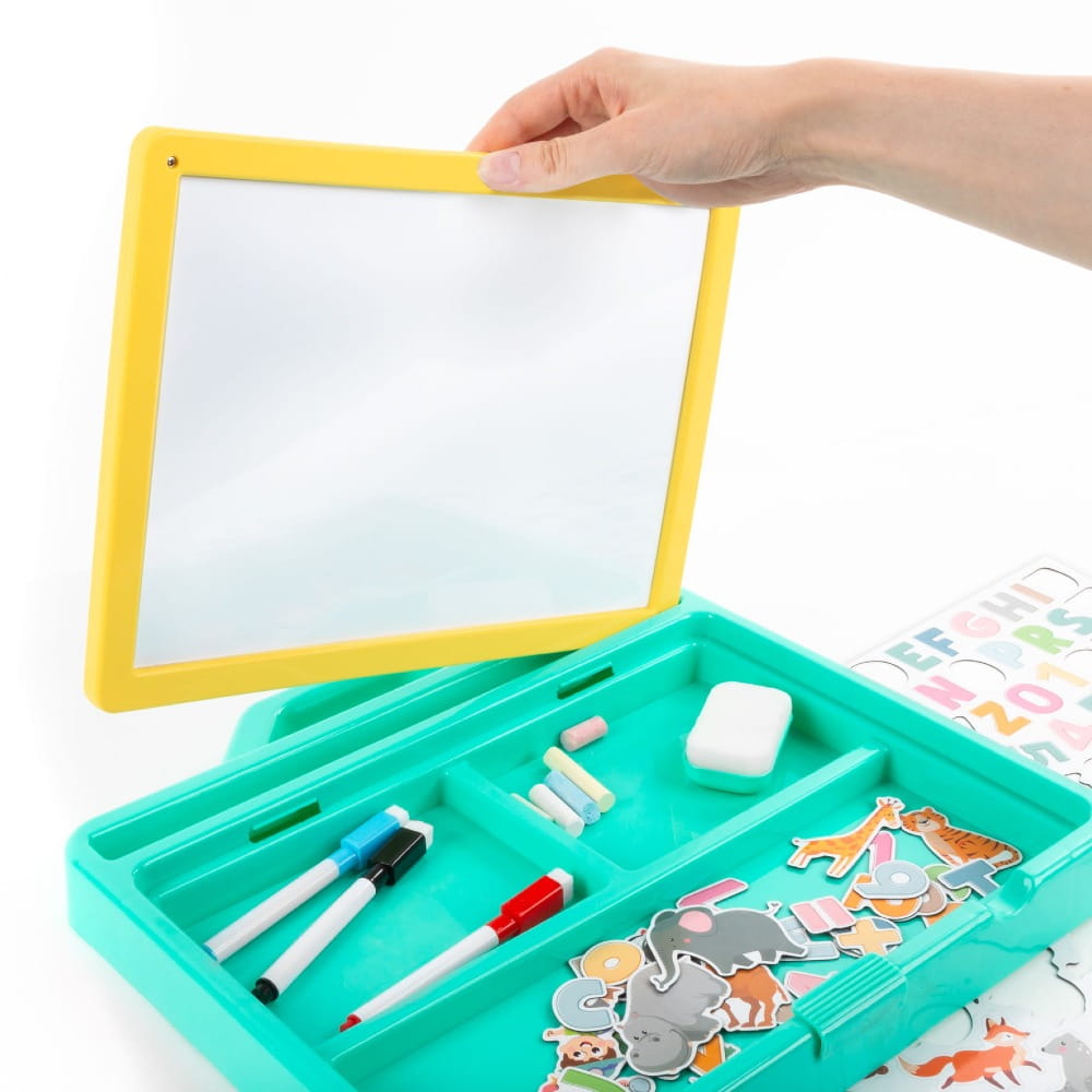 Przenośny zestaw tablic 5w1 to wszechstronna zabawka edukacyjna, która łączy naukę z kreatywną zabawą. Zestaw rozwija pamięć, wyobraźnię, koncentrację oraz zdolności manualne i plastyczne dziecka.