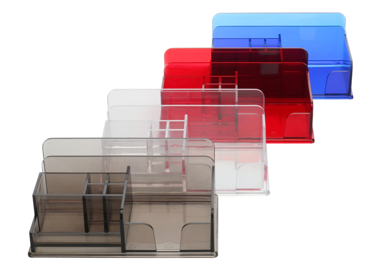 - Organizer na biurko MAX to przezroczysty, transparentny, wykonany z wysokiej jakości polistyrenu PS.