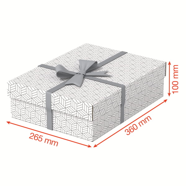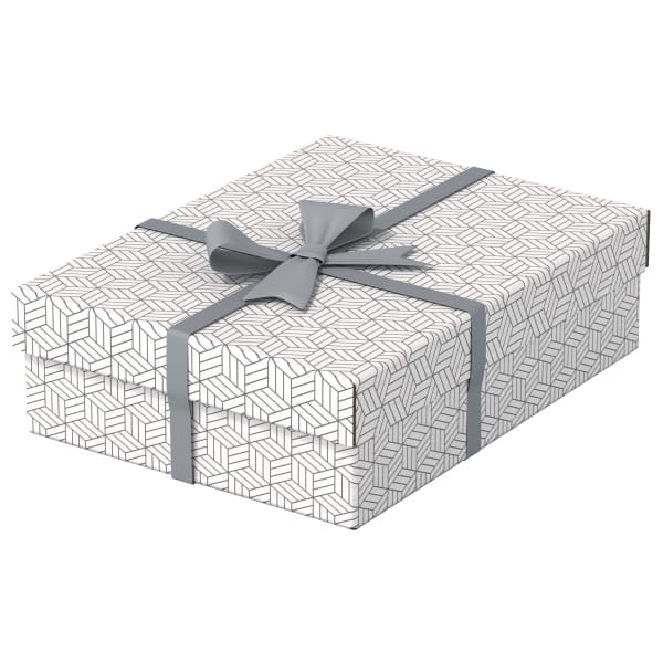 Zestaw trzech nowoczesnych i stylowych tekturowych pudełek ze zdejmowaną pokrywą, idealnych do zapakowania prezentów lub szybkiego wykreowania w domu nowego miejsca do przechowywania. Można je używać oddzielnie lub ustawiać na półkach i regałach, aby mniejsze rzeczy, takie jak zdjęcia czy dokumenty osobiste były przechowywane w uporządkowany i łatwy do znalezienia sposób. Dodaj wstążkę i zapakuj prezent! Po wyjęciu prezentu obdarowany może wykorzystać pudełko do przechowywania drobiazgów, dzięki czemu otrzyma 2 prezenty w jednym. Wykonane z mocnej tektury falistej, w 100% pochodzącej z recyklingu i w 100% nadającej się do ponownego przetworzenia, opatrzonej certyfikatem FSC. Mają gładką, łatwą do czyszczenia powierzchnię z dwukolorowym, geometrycznym wzorem, dopełniającym styl wnętrza. Pudełka są dostarczane na płasko, do samodzielnego złożenia, a ich montaż jest szybki i łatwy. Po złożeniu boki pudełka tworzą podwójne ścianki, dzięki czemu pudełka są mocne i dobrze chronią zawartość. Wszystkie mają ten sam rozmiar.